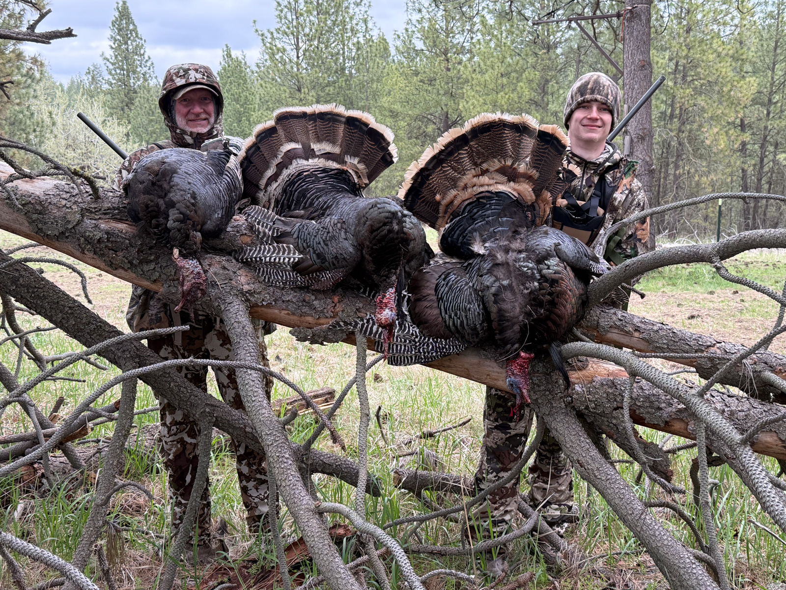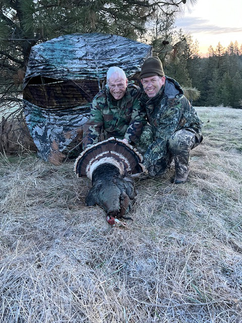 We hunt turkeys out of box blinds because most hunters and almost all youth or first time hunters have difficulty sitting still. Their vision and hearing is second to none and the old saying is “if a turkey could smell we would never get one”. We use stuffed hens for decoys and their names are Harriet and Suzie. We also have a full size Tom we put out sometimes and his name is Beat Down Billy. If you hunt with us and we use Billy you will get to experience the reason he got his name “Beat Down”.